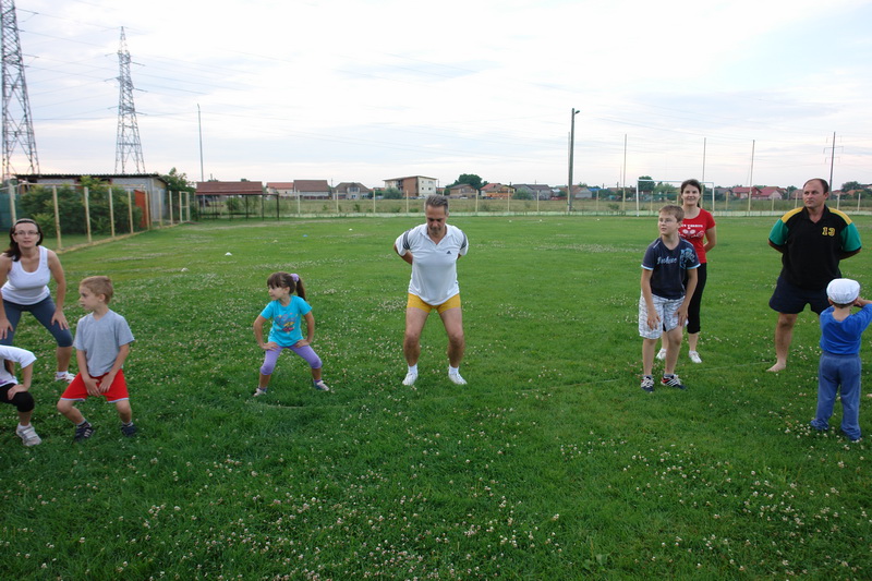 Desi furtuna de azi i-a speriat pe cativa giroceni, iar altii sunt plecati prin concedii, cativa zeci de localnici de toate varstele s-au adunat si in aceasta duminica de la ora 20.00, pentru o cura de sanatate prin miscare. Ploaia care a "prefatat" acest eveniment nu a facut decat sa coboare temperatura din duminica torida de azi la o valoare ideala pentru practicarea sportului in aer liber. Au aparut si participanti noi, care s-au aratat incantati de aceasta initiativa. Faza zilei a realizat-o un patruped care s-a a laturat grupului si a raspuns activ exercitiilor efectuate. Mai jos aveti o galerie foto. Va asteptam duminica viitoare de la ora 20.00!