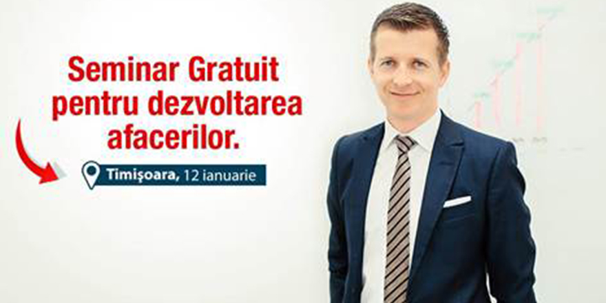Seminarul gratuit ,,21 de metode pentru a creste o afacere", eveniment susținut de Complexul Senator, va avea loc in 12 ianuarie in doua sesiuni - de la 10:00, respectiv de la 17:00 si se adreseaza oamenilor cu putere de decizie din companiile mici si mijlocii sau celor care isi doresc sa construiasca o afacere profitabila.