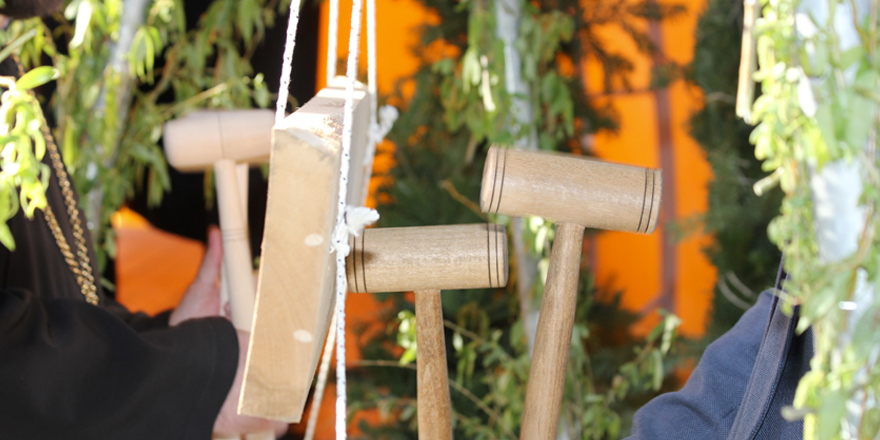 Aici au fost pregătite 33 de toace, după numărul anilor pe care Mântuitorul i-a petrecut pe pământ, la care îşi vor arăta măiestria toţi cei care ştiu să bată toaca, dar şi cei care doresc să înveţe.