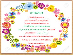 Primăria Comunei Giroc şi Liceul Teoretic “David Voniga” Giroc vă invită , în data de 15 mai 2015, la FESTIVALUL INTERNAŢIONAL DE FOLCLOR AL PREŞCOLARILOR “FLOARE GIROCEANĂ”, ediţia a IV-a.