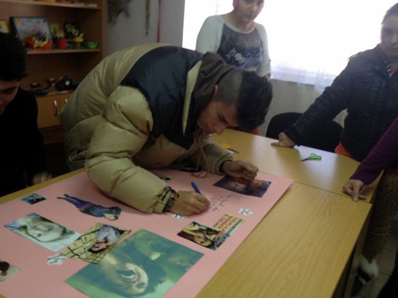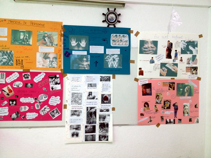 Elevii au vizionat un filmuleț de câteva minute, s-a făcut un feedback a ceea ce s-a prezentat și vizionat, iar apoi au fost împărțiți pe trei grupe. Fiecare grupă, împărțită apoi în două, au făcut afișe cu imagini și mesaje legate de tema campaniei. Prima echipă a avut ca temă ‘colaj din perspectiva victimei’, cea de-a doua ‘ colaj din perspectivă traficantului’, iar cea de-a treia ‘colaj- trafic și prelevare de organe’.